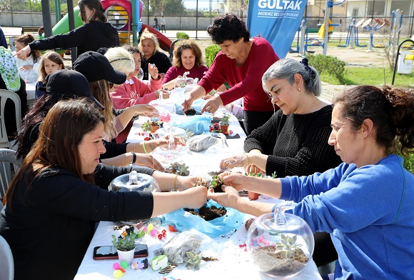 Akdeniz Belediyesi, depremzede kadınlar için “Umudumu Yeşertiyorum” adıyla Teraryum Atölyesi düzenlendi. Etkinlikte afet mağduru kadınlar; umutlarını, hayallerini ve dileklerini temsil eden figür ve çiçekleri kullanarak teraryumlarını süsledi, geleceğe dönük umutlarını yeşertti.