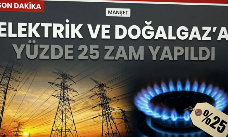 Enerji Piyasası Düzenleme Kurumu (EPDK), elektrik ve doğal gaza yüzde 25 oranında zam geldiğini duyurdu. Yeni zamlı tarife 4 Nisan Cumartesi gününden itibaren geçerli olacak.