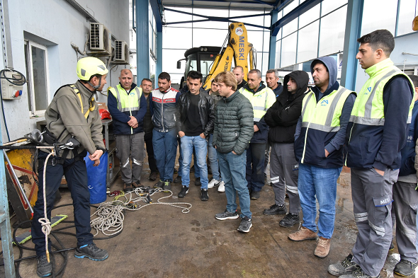 Mersin Büyükşehir Belediyesi Mersin Su ve Kanalizasyon İdaresi (MESKİ) Genel Müdürlüğü, hizmet içi eğitim programlarına ‘Yüksekte Güvenli Çalışma Eğitimi’ ile devam ediyor.